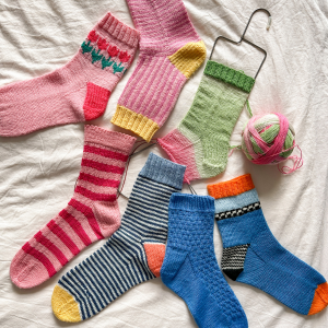 Vanwege de #sokkengektekal krijg je tot en met 3 mei 10% korting met code sokkengekte op al mijn sok patronen en de Cursus Top-Down Sokken Breien.