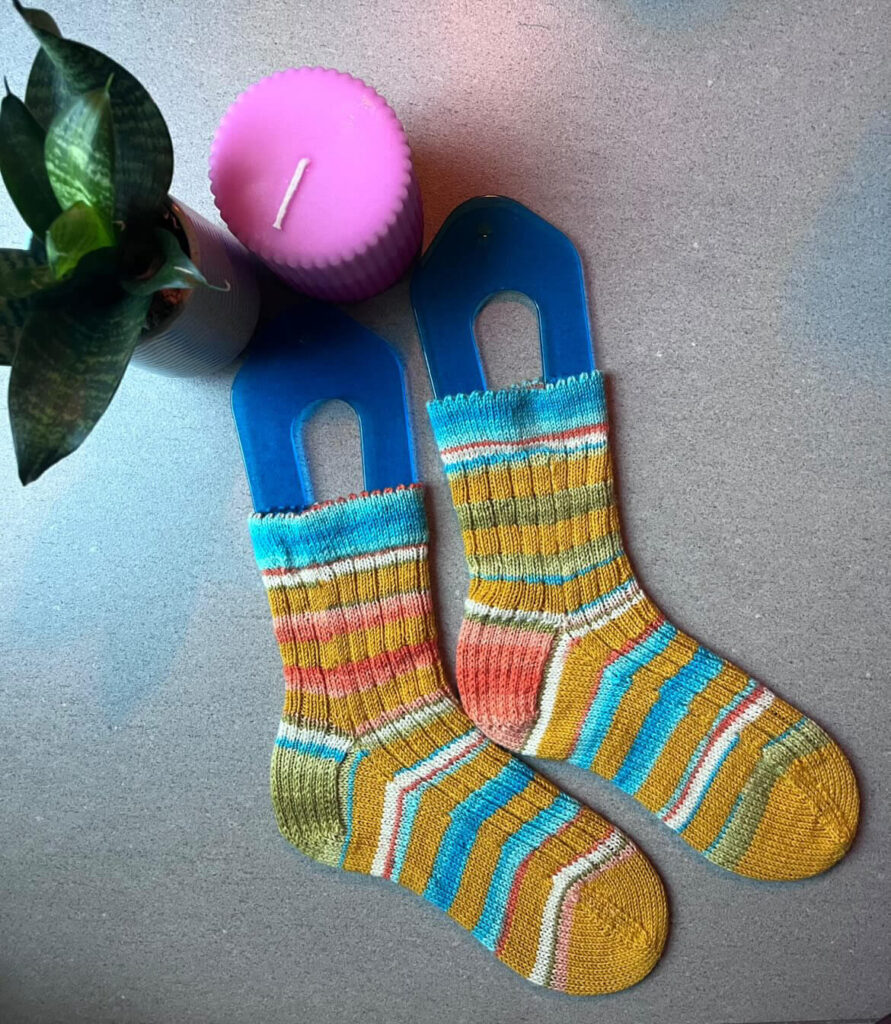 De HEMA sokken waarop ik mijn breipatroon baseerde.