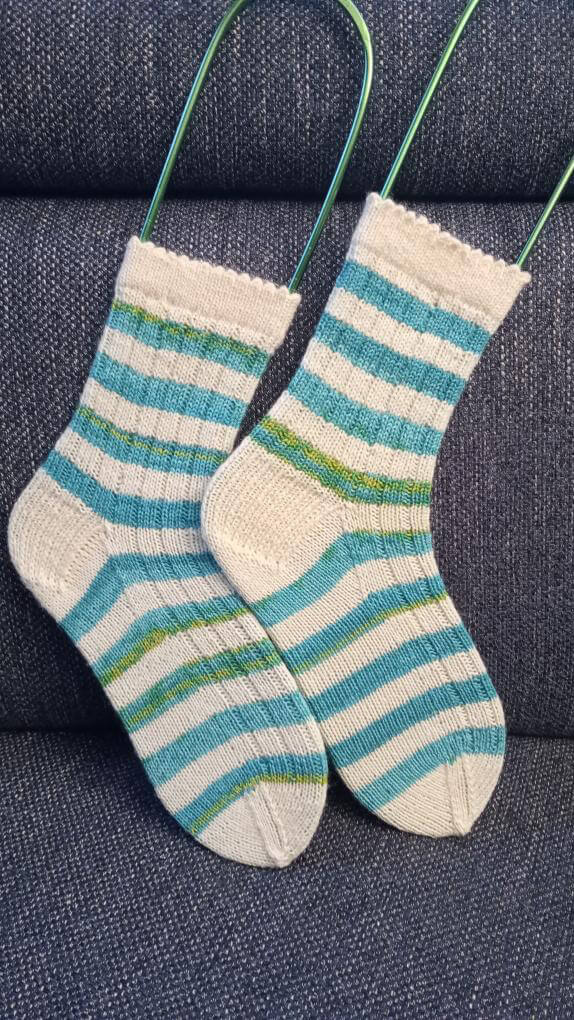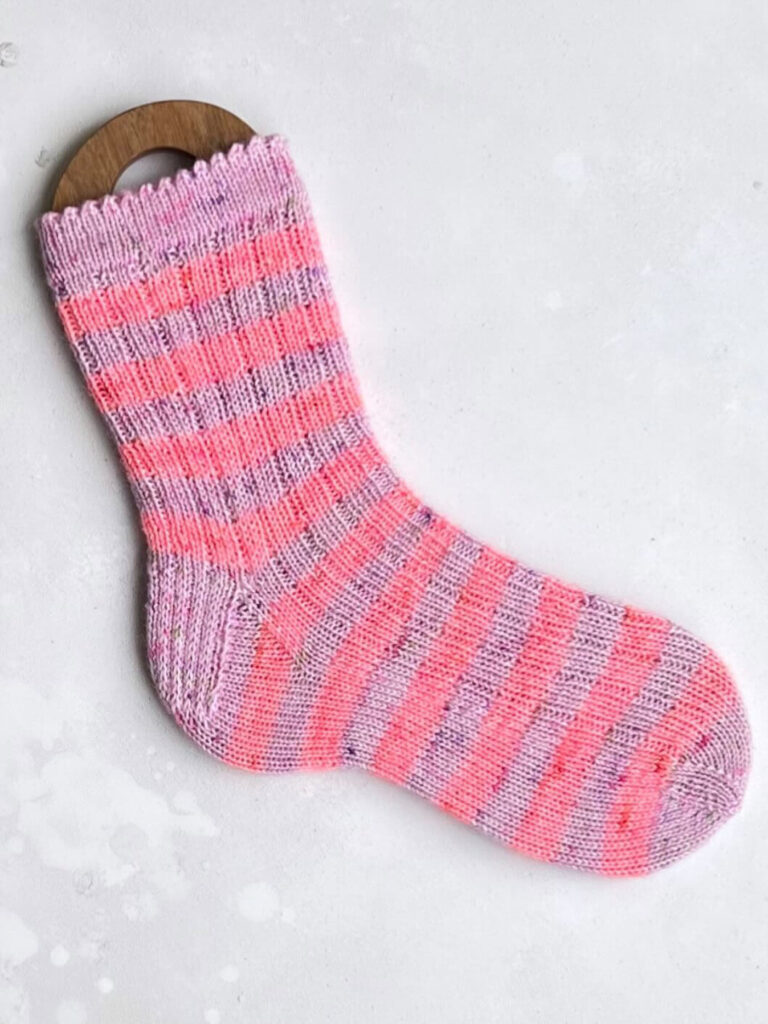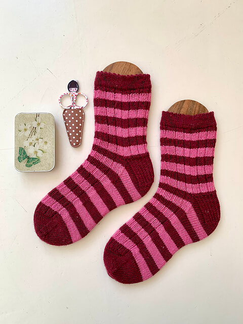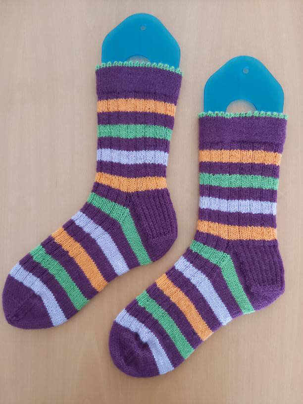 Breipatroon voor sokken met strepen, ribbel, omgevouwen zoom en muizentand randje inclusief behulpzame video tutorials